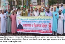 মতলব উত্তরে মাওলানা রইস উদ্দিন হত্যার প্রতিবাদে মানববন্ধন ও বিক্ষোভ সমাবেশ